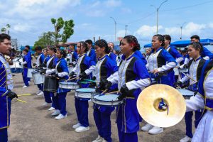 Um dos grandes destaques do desfile foi a emocionante apresentação da Banda Marcial, que abrilhantou o evento com um repertório envolvente e marchas que empolgaram o público presente, dando ainda mais brilho e sonoridade ao momento cívico.