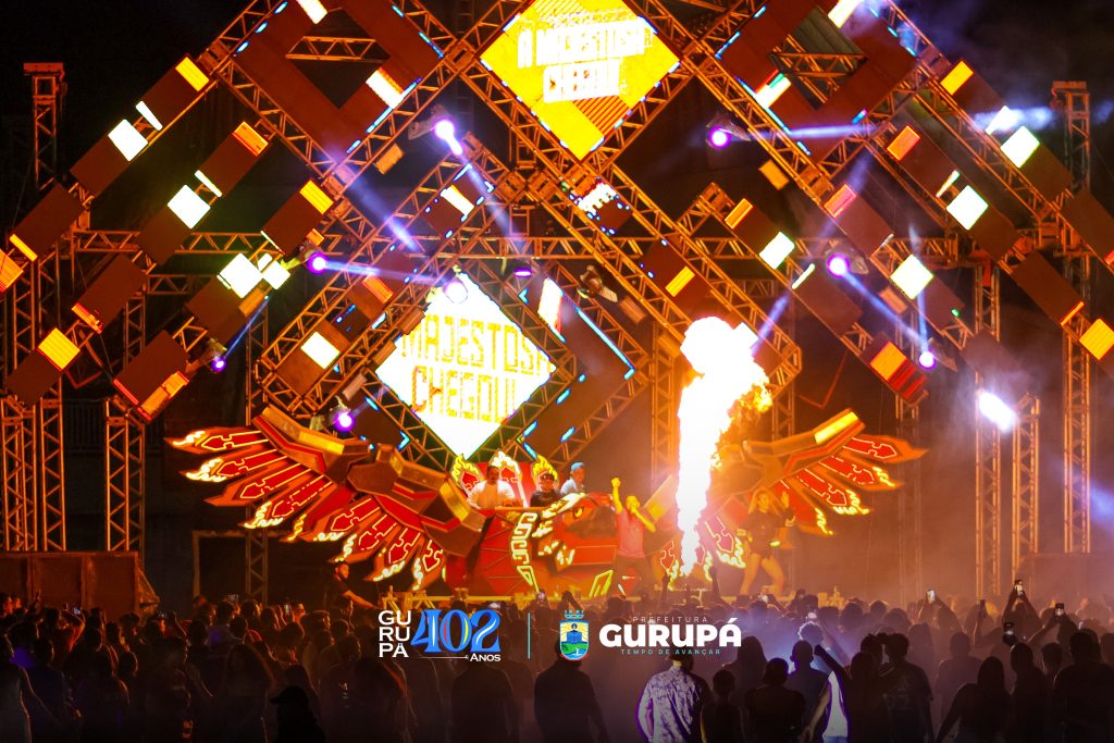À noite, a programação seguiu com o tradicional corte do bolo de 20 metros, acompanhado pelo canto de parabéns entoado por milhares de pessoas em frente à sede da prefeitura. Encerrando a celebração, o estádio municipal foi palco de uma verdadeira festa popular, com shows das atrações principais Letícia Auolly, Marcynho Sensação e da aparelhagem JSom, que animaram o público até a madrugada, coroando com sucesso os 402 anos de Gurupá.