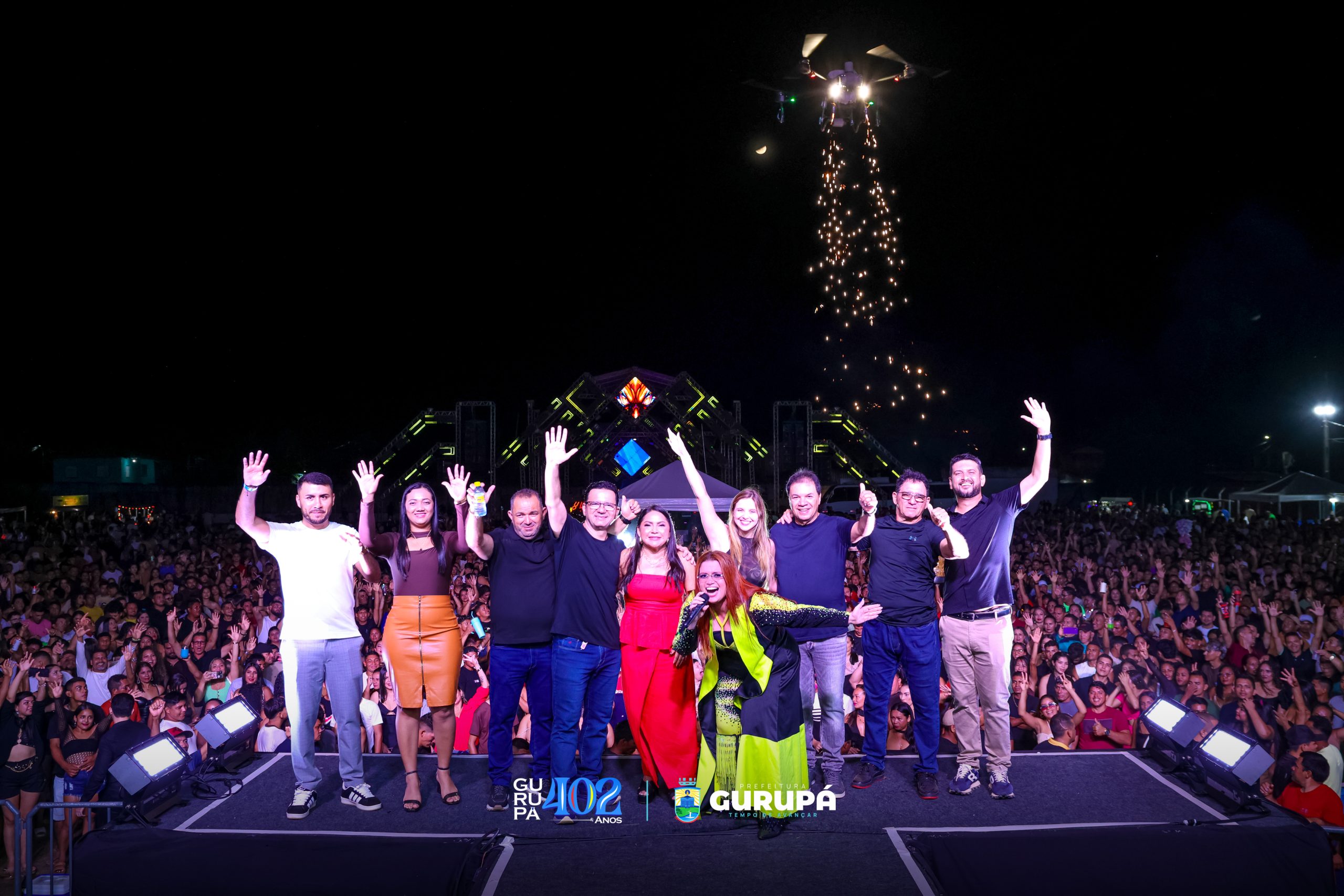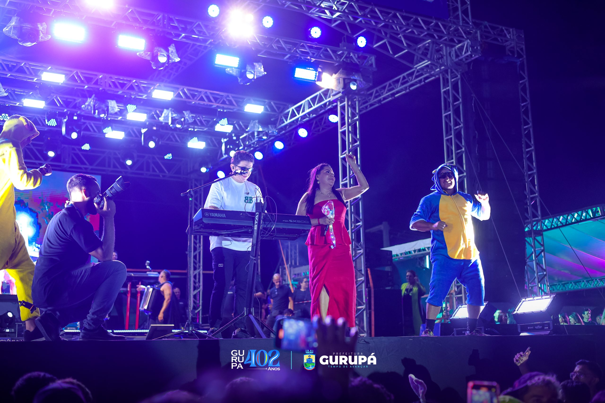 À noite, a programação seguiu com o tradicional corte do bolo de 20 metros, acompanhado pelo canto de parabéns entoado por milhares de pessoas em frente à sede da prefeitura. Encerrando a celebração, o estádio municipal foi palco de uma verdadeira festa popular, com shows das atrações principais Letícia Auolly, Marcynho Sensação e da aparelhagem JSom, que animaram o público até a madrugada, coroando com sucesso os 402 anos de Gurupá.